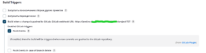 В настройках проекта Jenkins в секции Build Triggers ставлю «галку» в чекбоксе Build when a change is pushed to GitLab. GitLab webhook URL: и «галку» в Push Events.