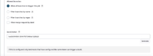 Ниже в этом же разделе ( Build when a change is pushed to GitLab. GitLab webhook URL: ) раскрываю Advanced (Расширенные), нахожу пункт Secret token и генерирую токен доступа для запуска линии Jenkins: